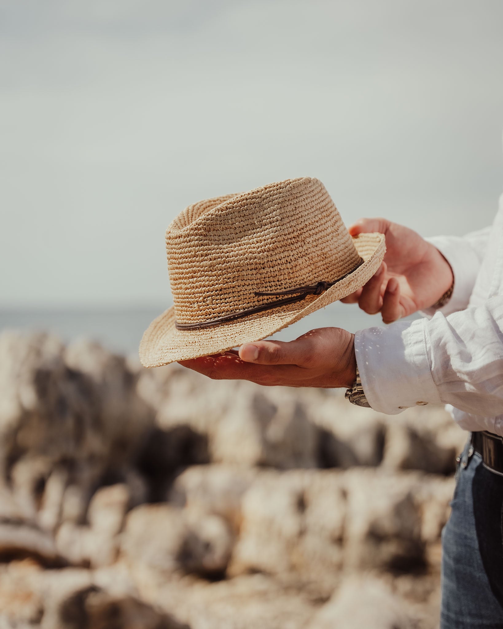 Unser Trilby Strohhut aus Raffia ist die optimale Ergänzung zu deinem sommerlichen Outfit.